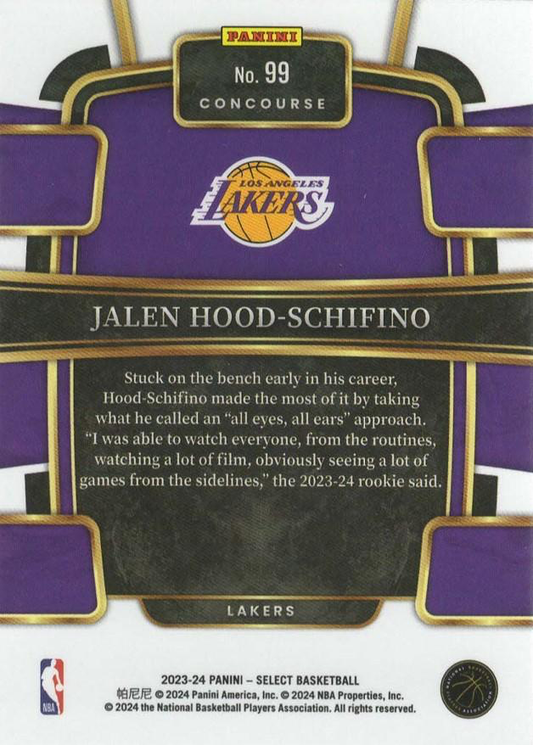 2023 Panini Select NBA Silver Jalen Hood-Schifino RC #99 Los Angeles Lakers