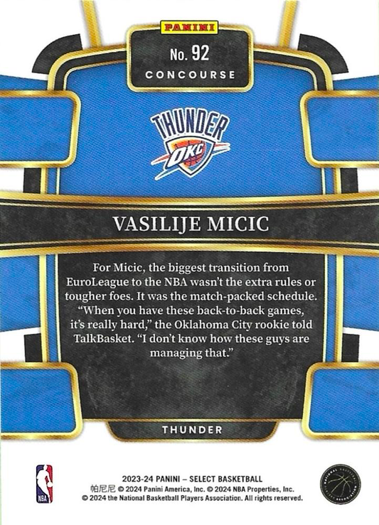 2023 Panini Select NBA Blue Vasilije Micic RC #92 Oklahoma City Thunder
