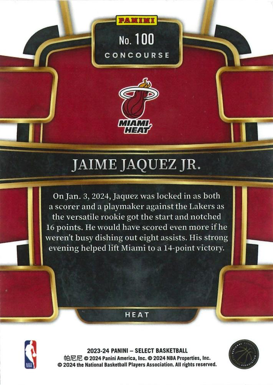2023 Panini Select NBA Blue Jaime Jaquez Jr. RC #100 Miami Heat