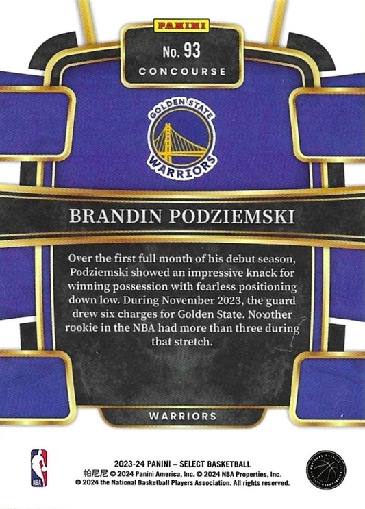 2023 Panini Select NBA Blue Brandin Podziemski RC #93 Golden State Warriors