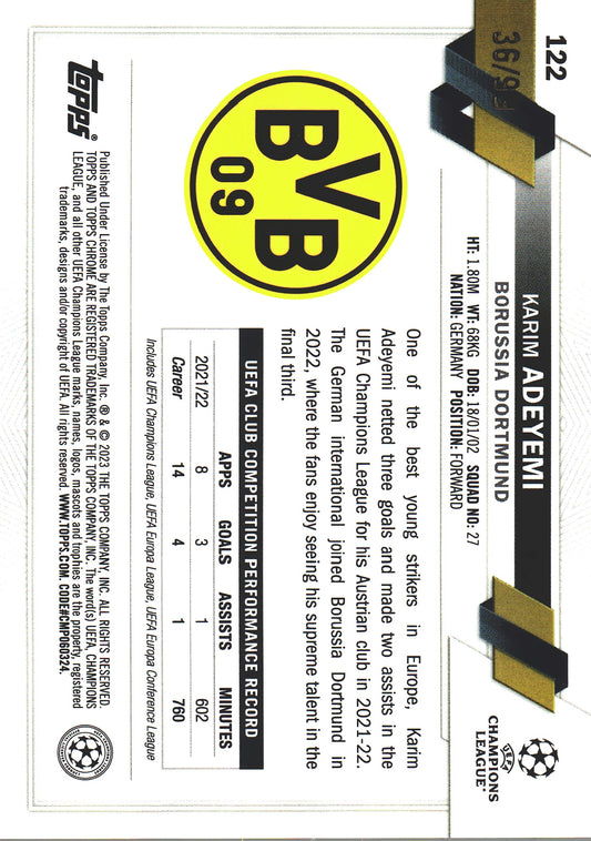 2022 Topps Chrome UCC Sapphire Yellow /99 Karim Adeyemi #11 Borussia Dortmund