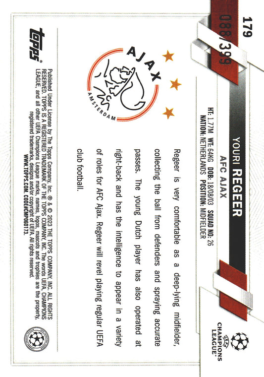 2022 Topps Chrome UCC Green Neon X-Fractor /399 Youri Regeer RC #179 Ajax Amsterdam
