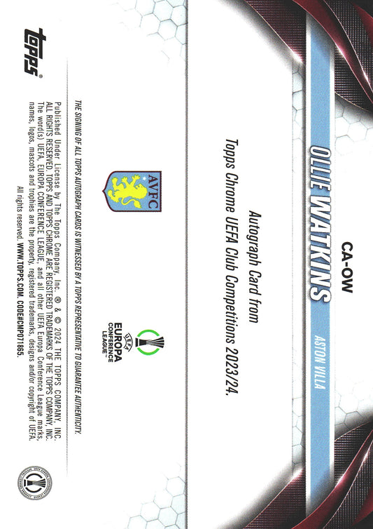 2023 Topps Chrome Violet Speckle Refractor /299 Autograph Ollie Watkins #CA-OW Aston Villa
