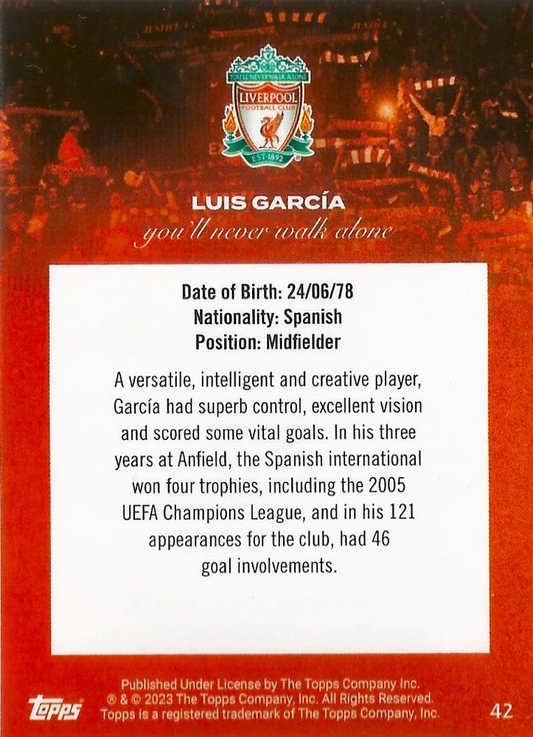 2023 Topps Liverpool Team Set Luis Garcia YNWA #42 Liverpool