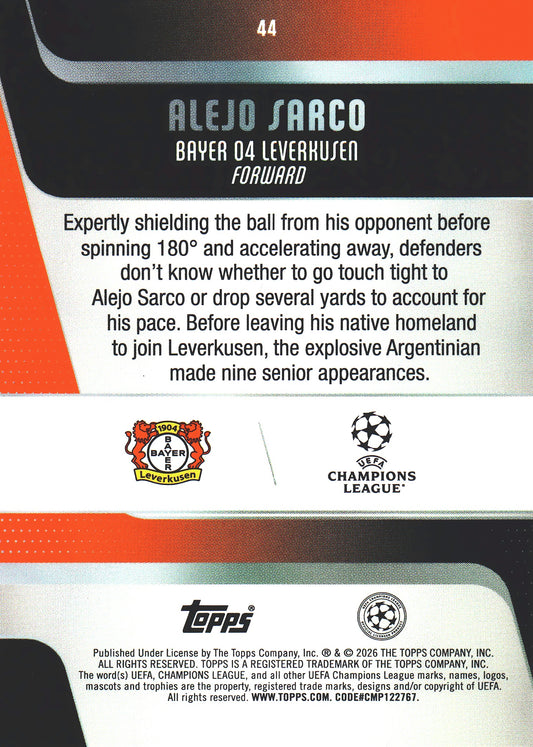 2025 Topps UCC Alejo Sarco RC #44 Bayer Leverkusen