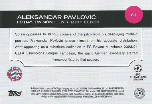 2024 Topps UCC Aleksandar Pavlović ASR Future Stars #61 FC Bayern Munchen