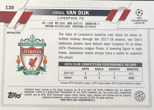 2022 Topps Chrome UCC Virgil van Dijk Refractor #130 Liverpool