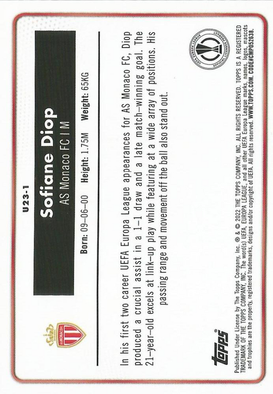 2021 Topps Merlin UEFA Club Competitions Sofiane Diop U23 Stars U23-1 AS Monaco