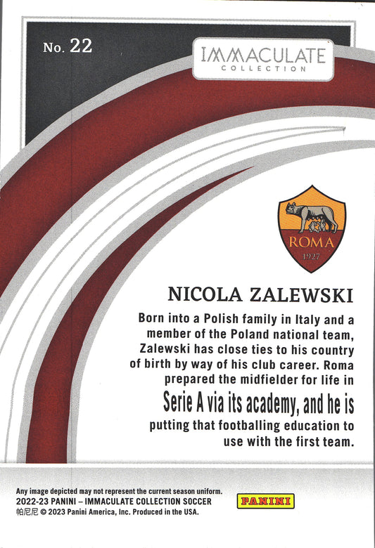 2022 Panini Immaculate Nicola Zalewski RC /75 #22 AS Roma
