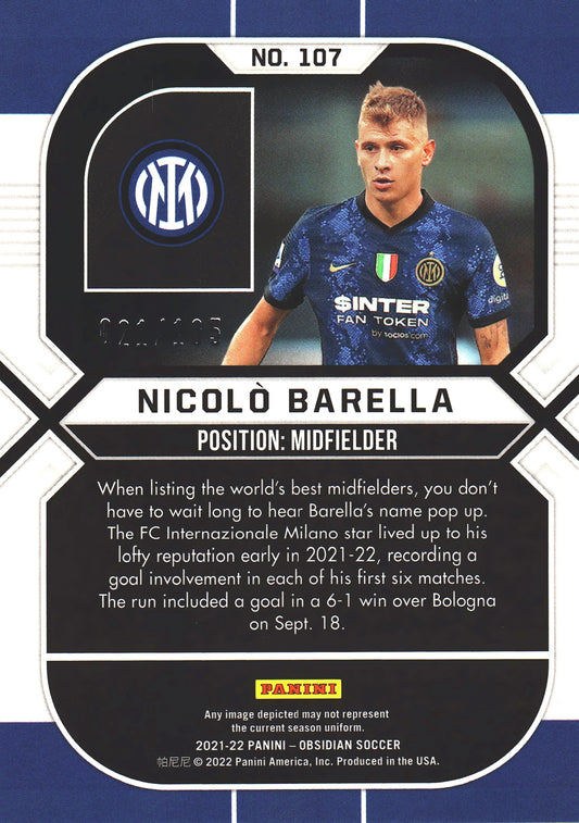 2021 Panini Obsidian Nicolo Barella /105 #107 Inter Milan