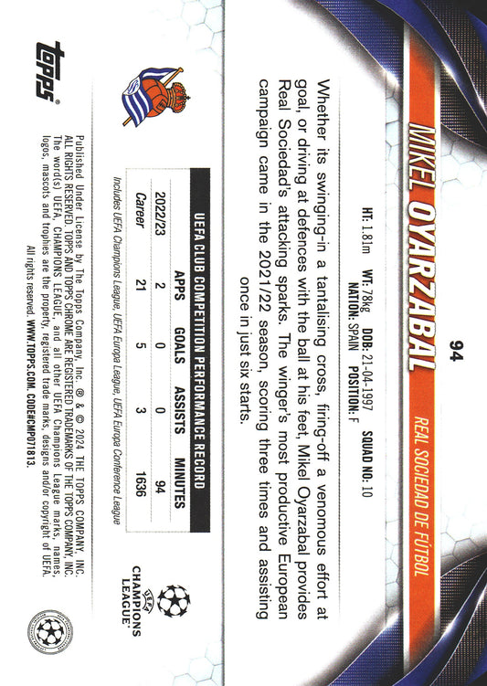 2023 Topps Chrome Sapphire UCC Yellow /75 Mikel Oyarzabal #94 Real Sociedad