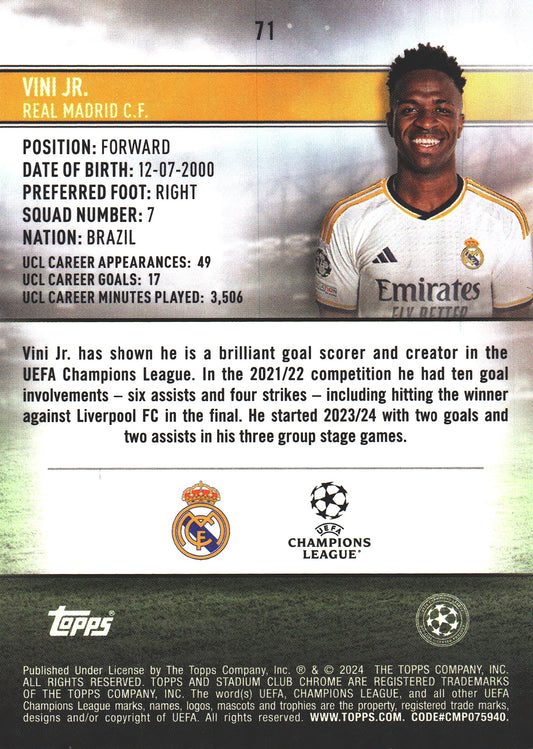 2024 Topps Chrome Stadium Club Gold /50 Vini Jr #71 Real Madrid