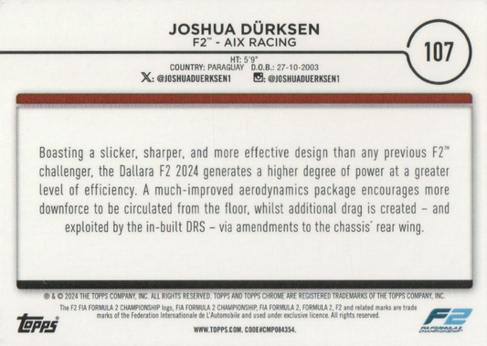 2024 Topps Chrome Formula 1 Joshua Durksen F2C #107 Aix Racing