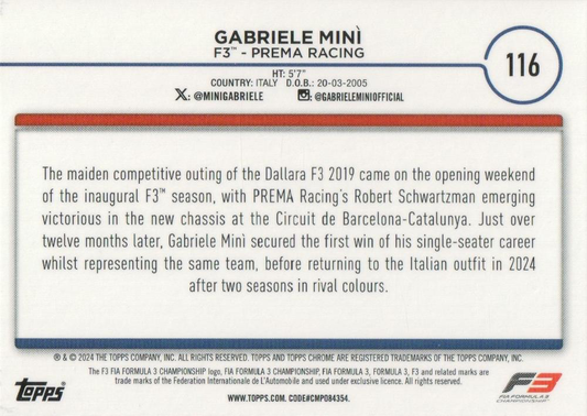 2024 Topps Chrome Formula 1 Gabriele Mini F3C #116 Prema Racing