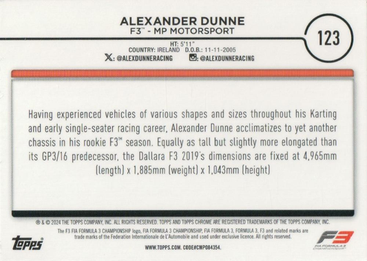 2024 Topps Chrome Formula 1 Alexander Dunne F3C #123 MP Motorsport