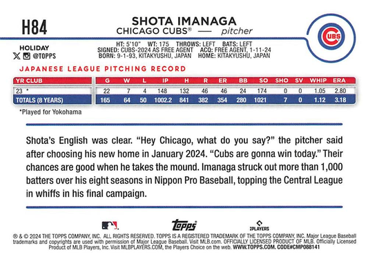 2024 Topps Holiday Shota Imanaga RC Chicago Cubs #H84