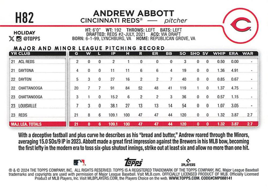 2024 Topps Holiday Andrew Abbott RC ASR Cincinnati Reds #H82