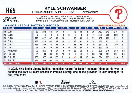 2024 Topps Holiday Kyle Schwarber Philadelphia Phillies #H65