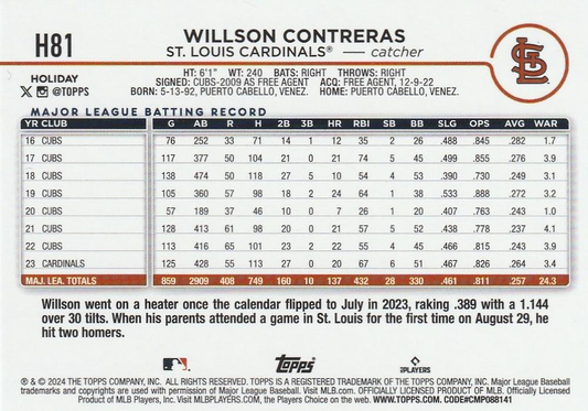 2024 Topps Holiday Willson Contreras St. Louis Cardinals #H81