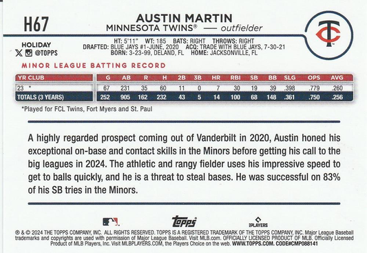 2024 Topps Holiday Austin Martin RC Minnesota Twins #H67