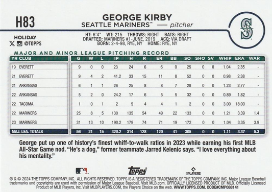 2024 Topps Holiday George Kirby Seattle Mariners #H83