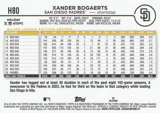 2024 Topps Holiday Xander Bogaerts San Diego Padres #H80