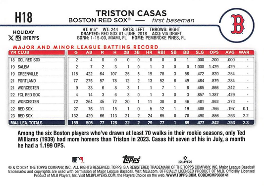 2024 Topps Holiday Triston Casas Boston Red Sox #H18