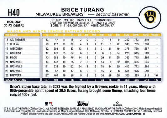 2024 Topps Holiday Brice Turang Milwaukee Brewers #H40