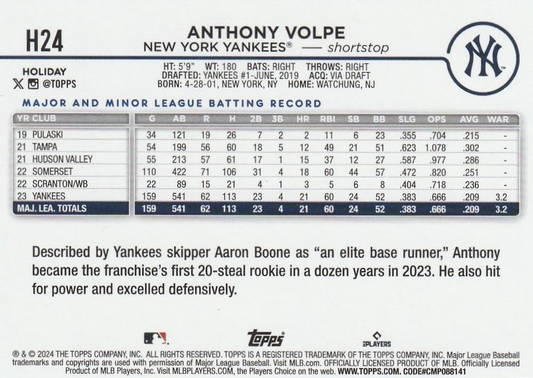 2024 Topps Holiday Anthony Volpe New York Yankees #H24