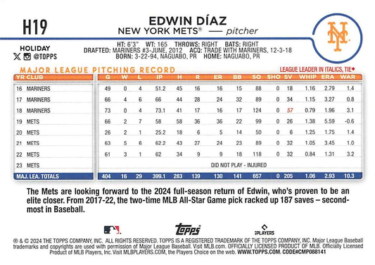 2024 Topps Holiday Edwin Díaz New York Mets #H19