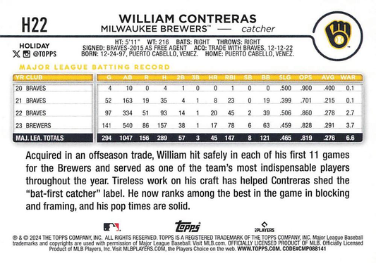 2024 Topps Holiday William Contreras Milwaukee Brewers #H22