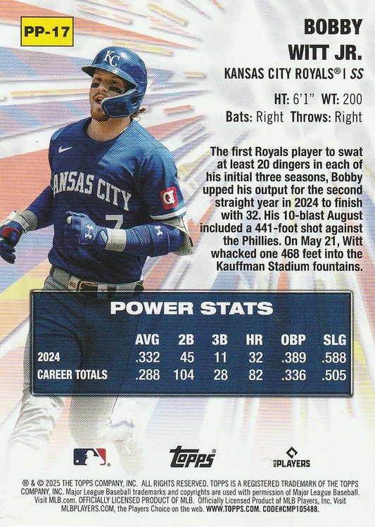 2025 Topps Series 1 Power Players Bobby Witt Jr. Kansas City Royals #PP-17