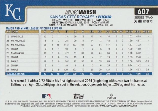 2025 Topps Series 2 Alec Marsh Kansas City Royals #607