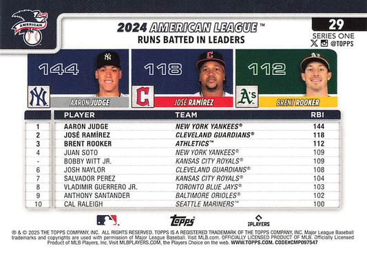 2025 Topps Series 1 League Leaders José Ramírez / Aaron Judge / Brent Rooker Guardians / Yankees / Athletics #29
