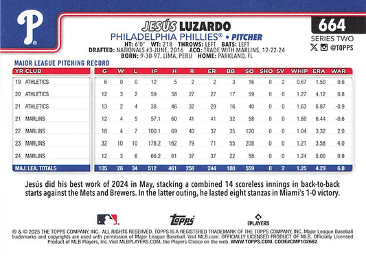 2025 Topps Series 2 Jesús Luzardo Philadelphia Phillies #664