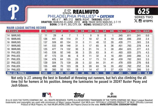 2025 Topps Series 2 J.T. Realmuto Philadelphia Phillies #625