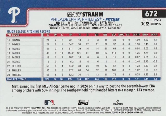 2025 Topps Series 2 Matt Strahm Philadelphia Phillies #672