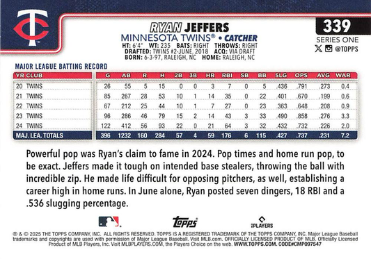 2025 Topps Series 1 Ryan Jeffers Minnesota Twins #339