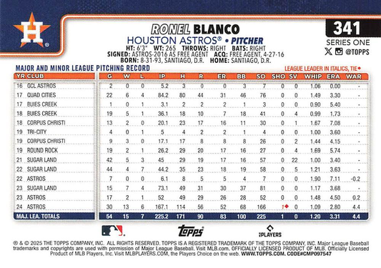 2025 Topps Series 1 Ronel Blanco Houston Astros #341