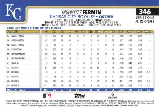 2025 Topps Series 1 Freddy Fermin Kansas City Royals #346