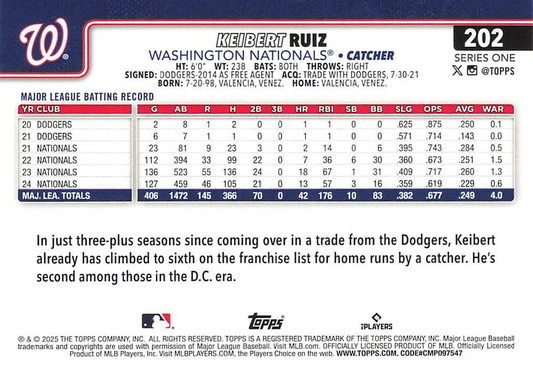2025 Topps Series 1 Keibert Ruiz Washington Nationals #202