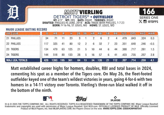 2025 Topps Series 1 Matt Vierling Detroit Tigers #166