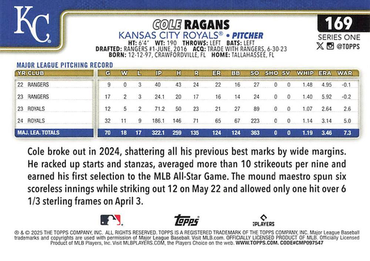 2025 Topps Series 1 Cole Ragans Kansas City Royals #169