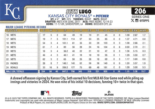 2025 Topps Series 1 Seth Lugo Kansas City Royals #206