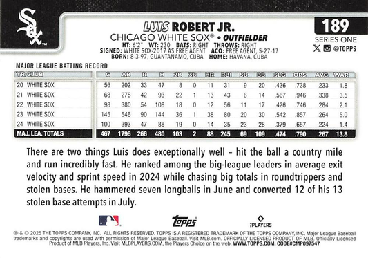 2025 Topps Series 1 Luis Robert Jr. Chicago White Sox #189