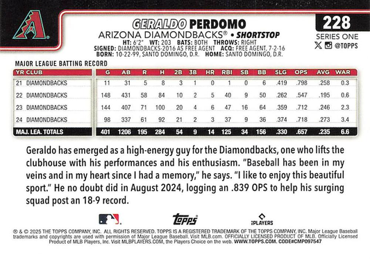 2025 Topps Series 1 Geraldo Perdomo Arizona Diamondbacks #228