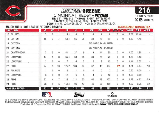 2025 Topps Series 1 Hunter Greene Cincinnati Reds #216