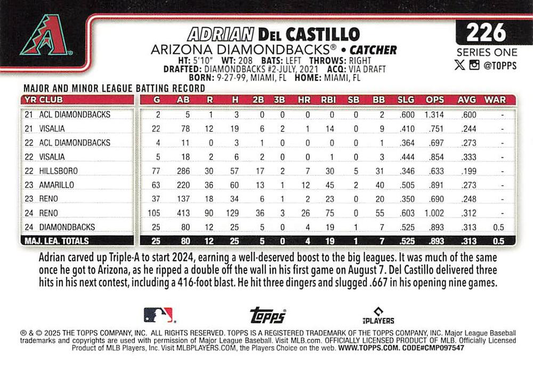 2025 Topps Series 1 Adrian Del Castillo RC Arizona Diamondbacks #226