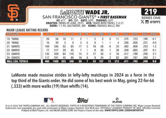 2025 Topps Series 1 LaMonte Wade Jr. San Francisco Giants #219