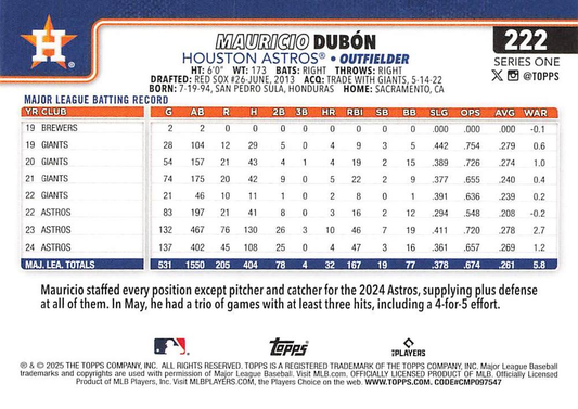 2025 Topps Series 1 Mauricio Dubón Houston Astros #222